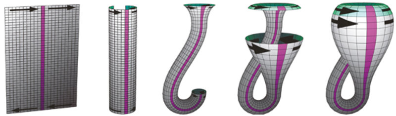 Zur Konstruktion der Klein'schen Flasche mit Selbstdurchdringung. Quelle: Buch Bilder der Mathematik