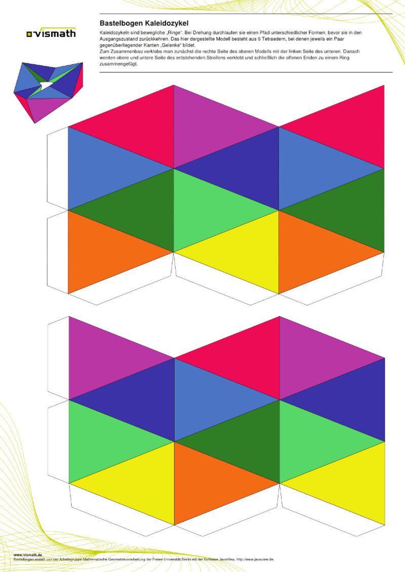 Das Kaleidozykel ist ein beweglicher Ring, den man in sich drehen kann. Der abgestumpfte Ikosaeder (Fußball) ist einer der archimedischen Körper. Auch er hat eine regelmäßige Struktur und besteht aus Fünf- und Sechsecken.