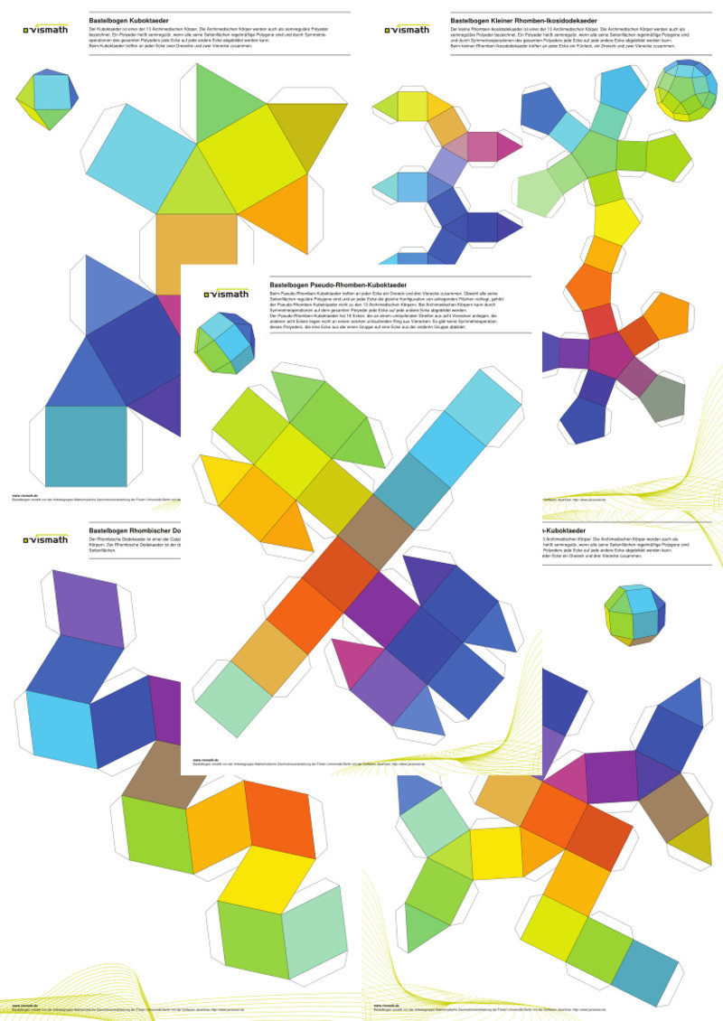 In diesem Set sind fünf Bögen enthalten, an denen man die Eigenschaften von archimedischen Körpern erfahren und erforschen kann.