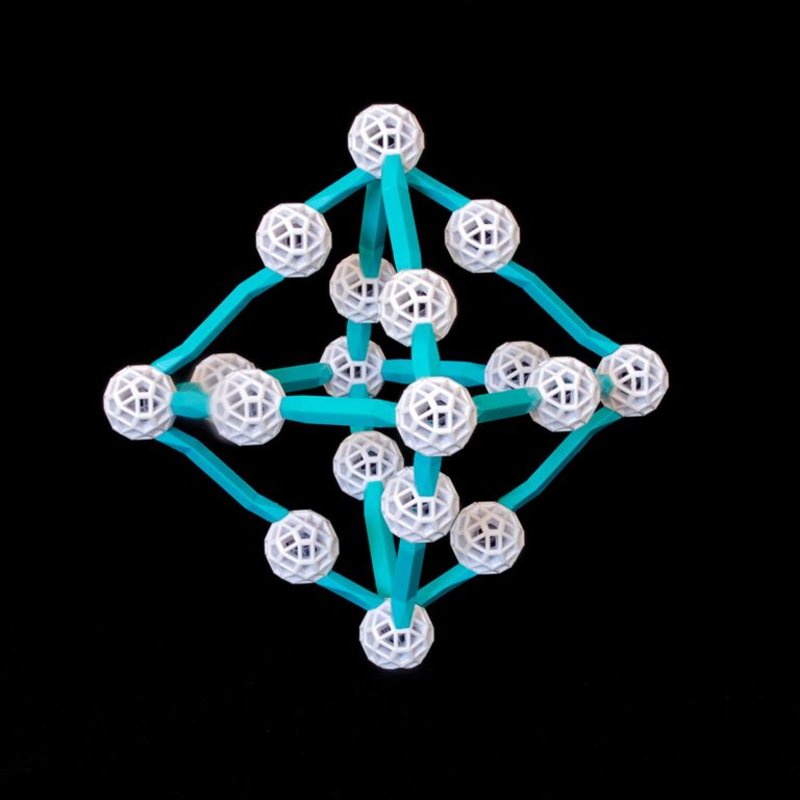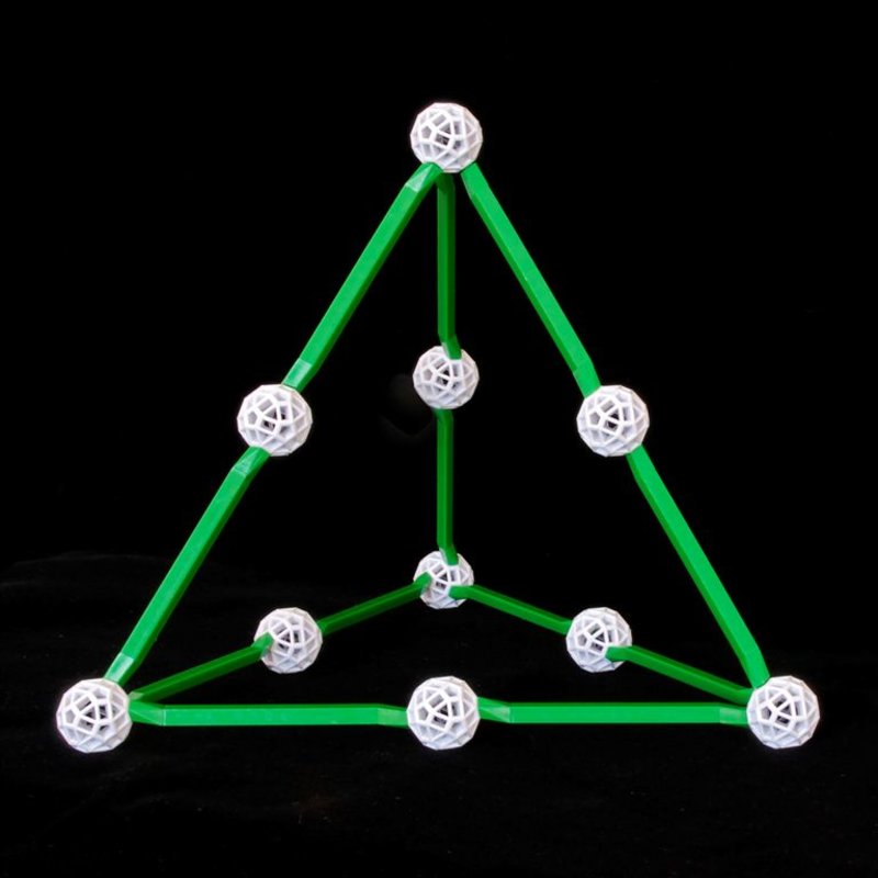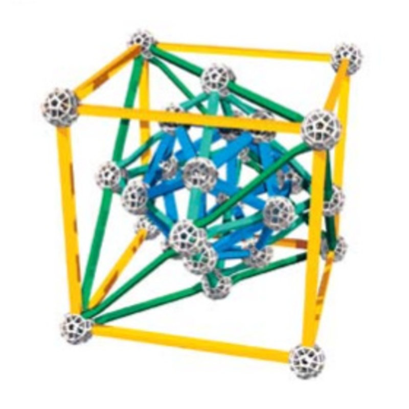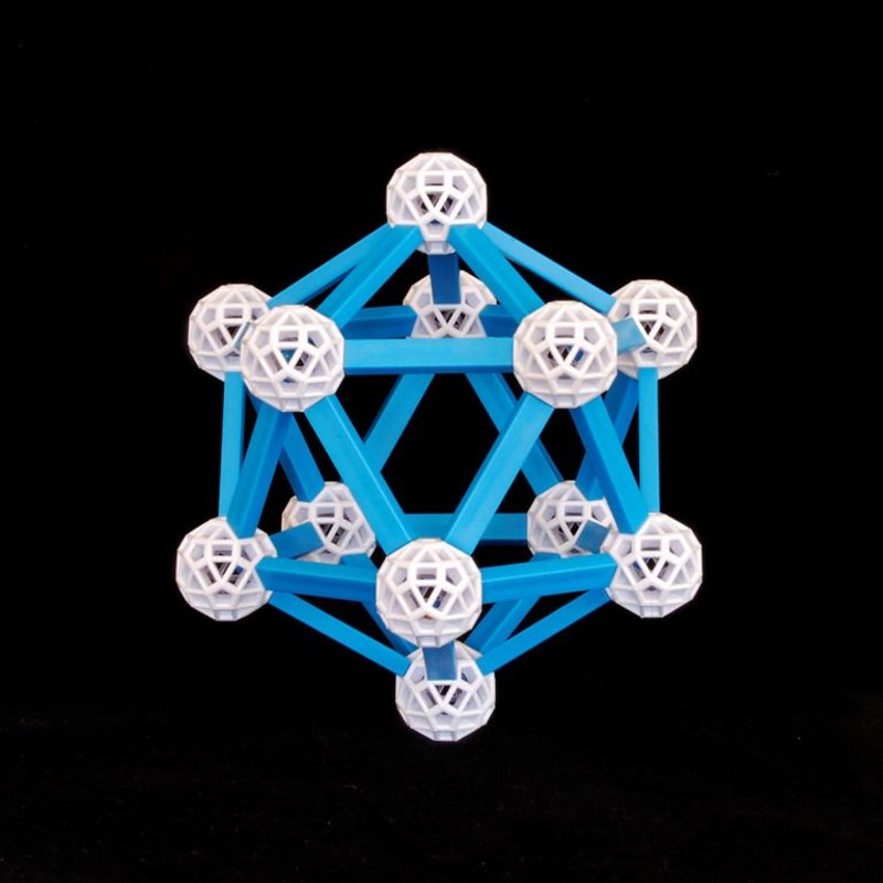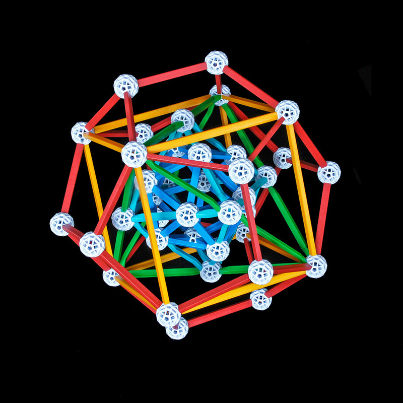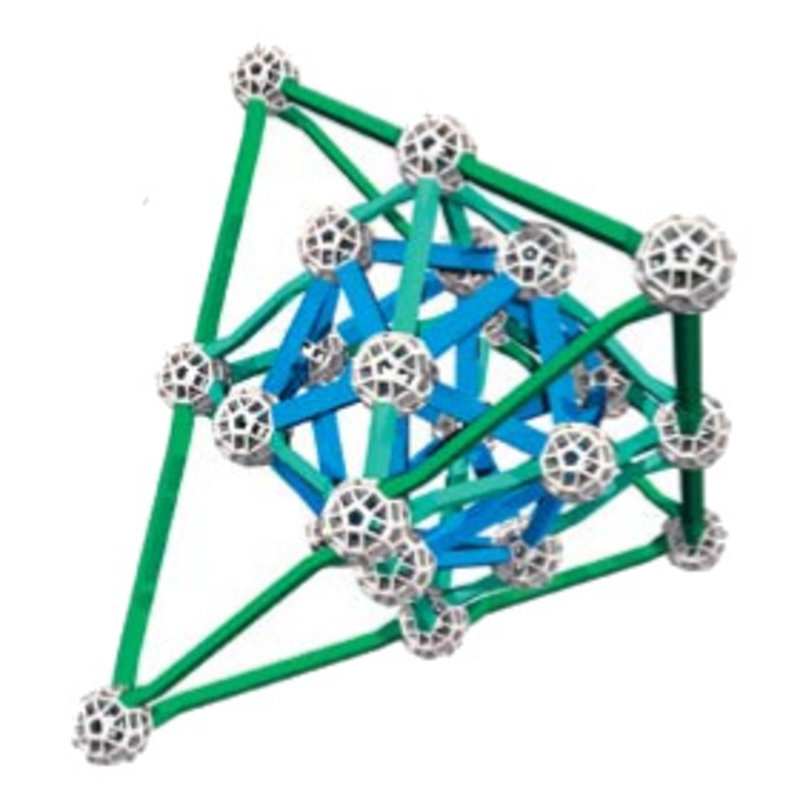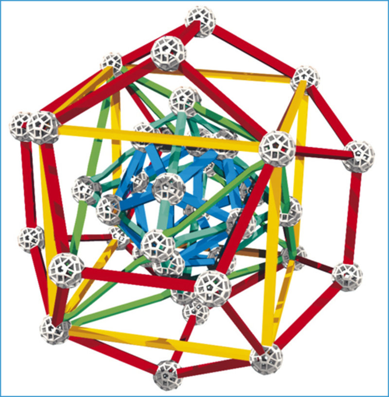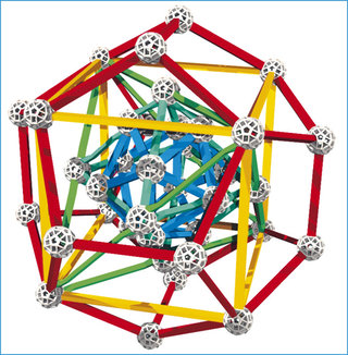 Mit dem Zometool-Bausatz kann diese Verschachtelung der fünf platonischen Körper nachgebaut werden.