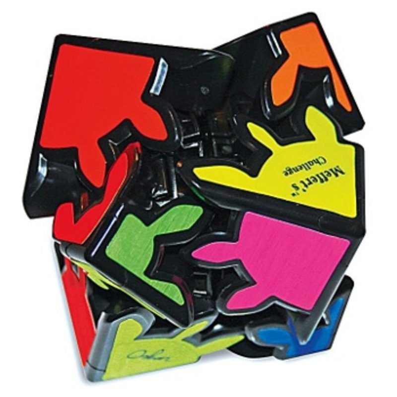 Noch ein neuer Zauberwürfel: Der „Gear Shift“ hat zwar „nur“ vier Felder auf jeder Seite, dafür drehen sich hier alle Ecken um sich selbst. Das besondere Getriebe im Inneren des Würfels sorgt dafür, dass sich kein Teil so verhält, wie man es gewöhnt ist.