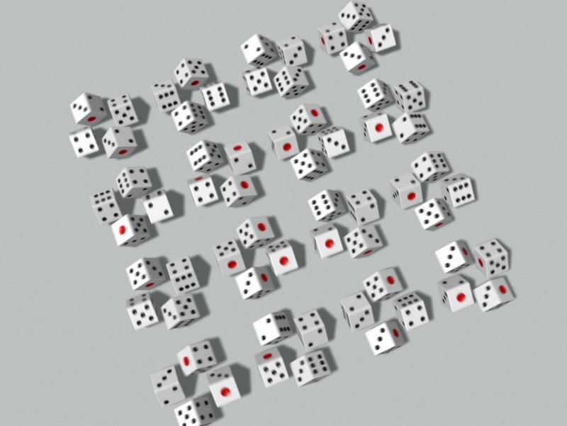 Die hier animierten Würfel entwickeln rhythmische und zugleich unterhaltsame Bilder aus ihren gemeinsamen Bewegungen. Der Film besteht aus einer einzigen Kamerafahrt und verfolgt eine Kettenreaktion der Würfel, die in verschiedenen Szenen interagieren.