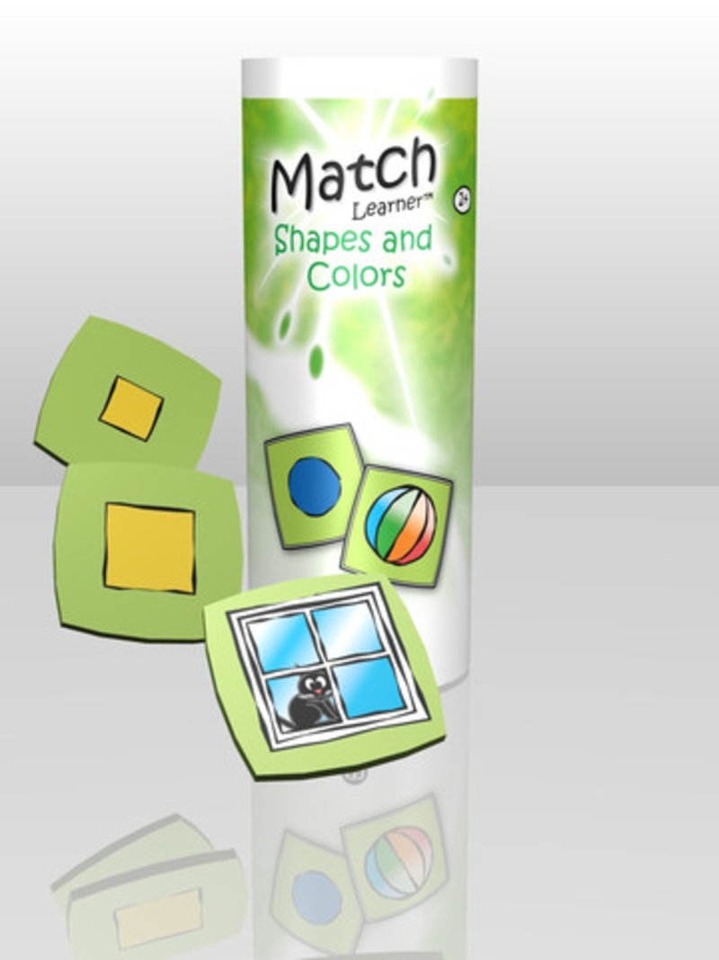 Jede Form kommt auf drei Plättchen vor. Es gibt eine Form in einer Farbe, zum Beispiel das Quadrat, jeweils in groß und in klein. Zusätzlich gibt es ein Plättchen mit einem Objekt, das diese Form annimmt. Beim Quadrat ist das beispielsweise ein quadratisches Fenster. So wird der Übergang von der abstrakten Form zum realen Objekt geschaffen.