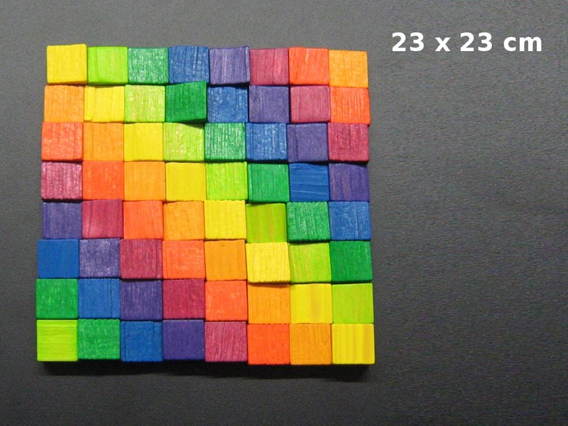 Die Anordnung der Würfel und Erstellung der Muster ist ganz Ihnen überlassen. Die natürliche Oberfläche jedes Holzwürfels sorgt dabei für ein individuelles Relief bei jeder neuen Anordnung.