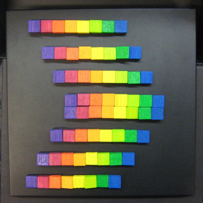 Mit mathematischen Methoden können immer neue Muster konstruiert werden. Erstellt man eine Zuordnung von Farben zu den Zahlen von 1 bis 8, kann man über die Anordnung der Zahlen immer neue Farbmuster erzeugen. So kann man beispielsweise nur gerade Zahlen in einer Zeile eintragen und nur ungerade in der nächsten.