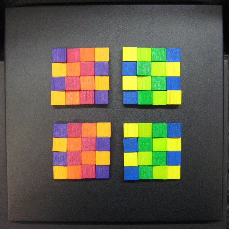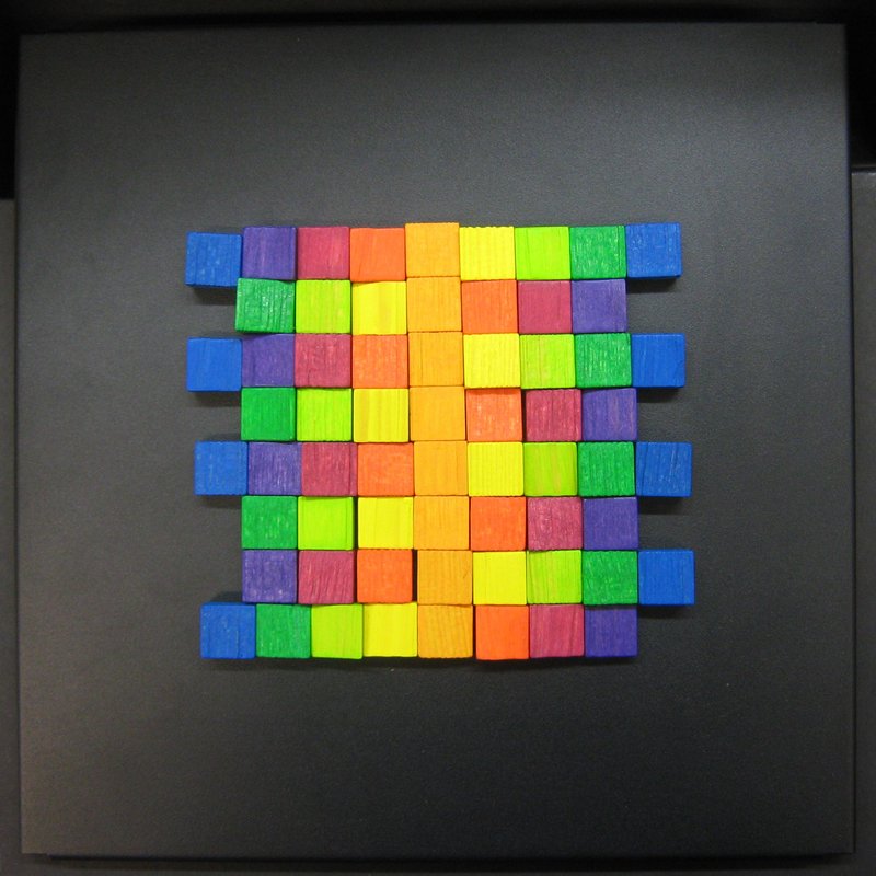 Jedes Magnetrelief besteht aus einer magnetischen Tafel und verschiedenen Holzwürfeln. Die einzelnen Würfel sind magnetisch und können nach Belieben auf der Magnettafel angeordnet werden. So entstehen im Handumdrehen immer neue Kunstwerke: Muster, Ornamente, kreative Bilder. Mit den Magnetreliefs kann jeder „Playart“ betreiben – spielerische Kunst.