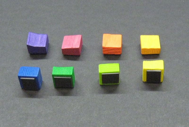 Jeder Spaltwürfel hat eine Grundfläche von ca. 1,4 x 1,4 cm und ist meist ca. 0,5 cm hoch. Auf der Unterseite jedes Würfels ist eine kleine Magnetfläche angebracht, mit der die Würfel auf der Magnettafel halten.