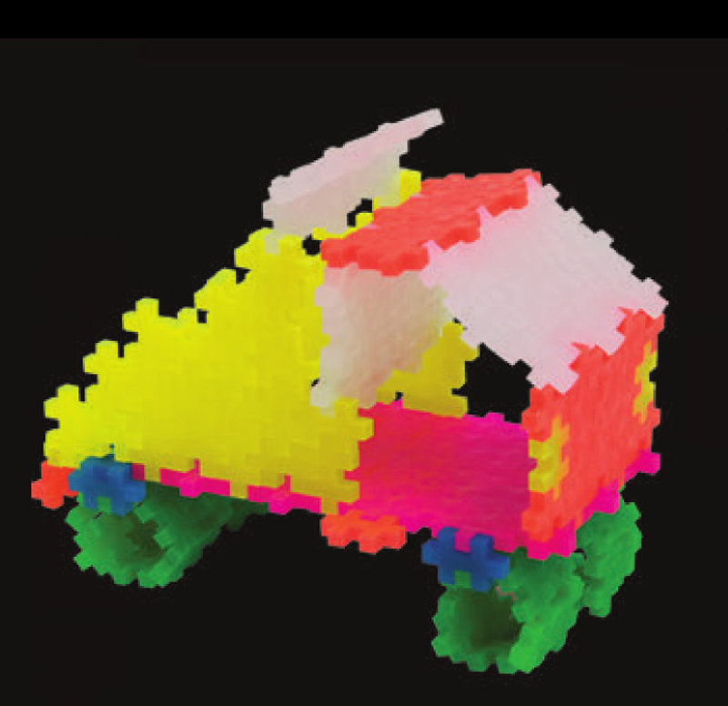 Für alle Modelle gibt es eine ausführliche Anleitung, mit der Sie die Modelle nach und nach zusammen setzen können. Die 220 enthaltenen Teile in den Neon-Farben ergeben je eines der drei Modelle.